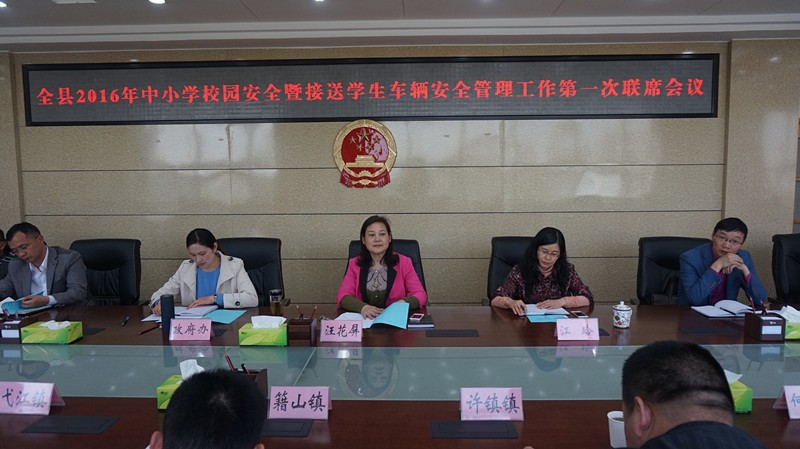 县政府副县长汪花屏在会上作了重要讲话,她强调:一是要求各镇、各相关职能部门要认真协调、落实、整改联席会议通报的各类安全隐患;二是及时制发防溺水、交通安全告学生家长一封信;三是县教育局和公安局要加快推进“校园一键报警系统”的审批和建设进度;四是各级各类学校要加大校园安全应急演练密度,提升师生逃生技能;五是各镇新任分管负责人应尽快融入工作环境,熟悉工作情况,及时召开本辖区校园安全和接送车安全管理工作会议,部署和落实本次会议精神;六是县广播电视台要配合交警部门加大宣传力度,将接送车违法典型案例的查处情况通报全县,警示教育全县学生接送车驾驶员汲取教训,规范运营;七是各镇要集中开展校园周边环境综合治理力度,净化校园周边环境,消除不安全因素;八是各镇、各部门要进一步梳理“百日攻坚”安全隐患整改清单,坚决消除安全隐患,尤其是“油改气”学生接送车的改装问题;九是各镇、各部门要高度重视防溺水安全宣传教育工作,坚决杜绝溺水事故的发生。