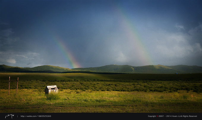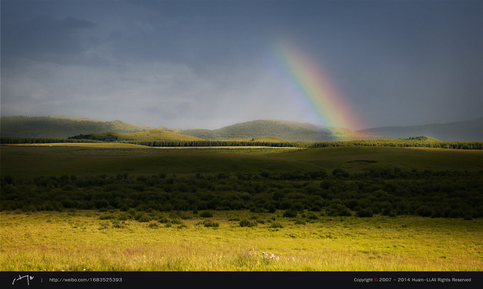 远处暴雨过后的地方还有一道彩虹,美丽如画