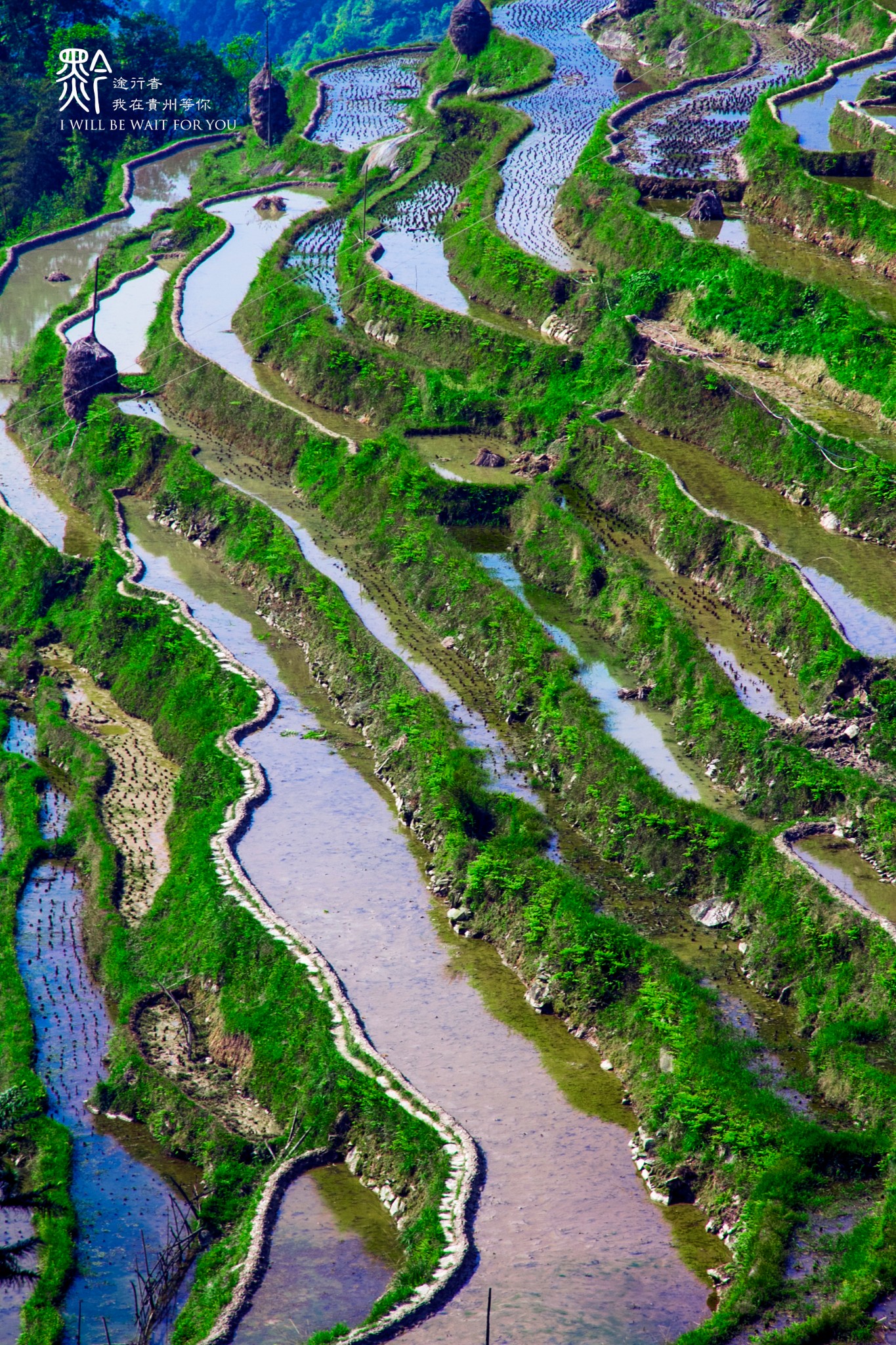 虽然上上下下的累得满头大汗,大家兴致不减,最后一张四月份的梯田。接下来是八月长满水稻的梯田。
