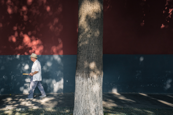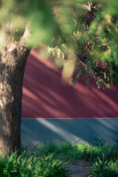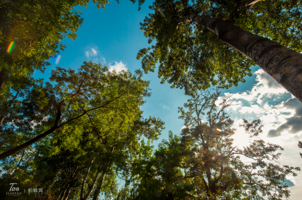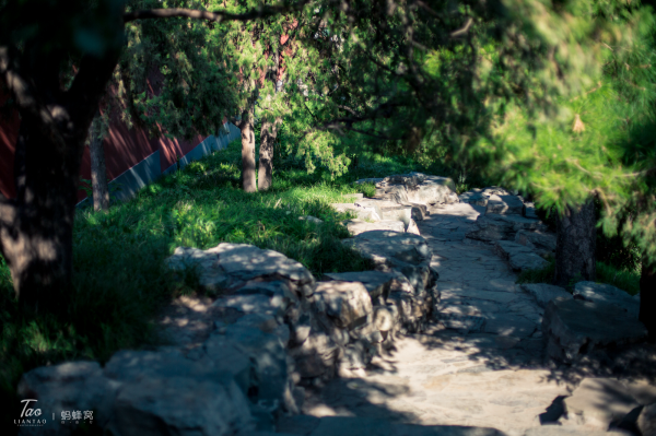 这时正值中午,我们都有些疲倦,光线也不适合拍照,我们就爬上了公园里的一座假小山坡,山坡上松柏成荫,绿郁葱葱,我们就在树荫下的石头上坐了下来。