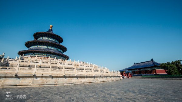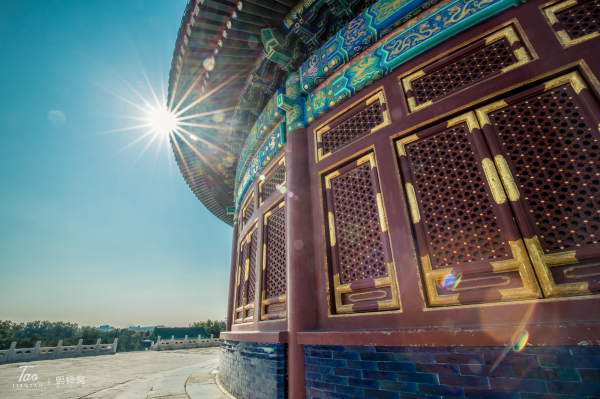 早晨的天格外的蓝,天坛公园里有很多老人在运动,这时候的祈年殿人还不是很多,我们赶紧拍几张天坛的全景。