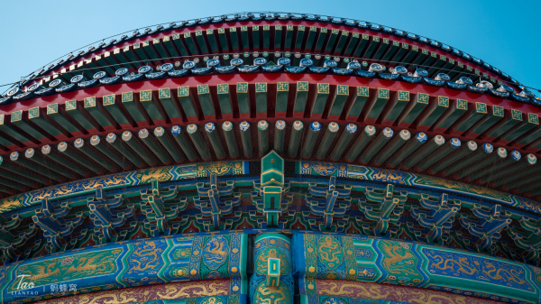 天坛可以说是我这几天来看到的皇家建筑里,线条最美的。圆形的基座、圆形的宫墙,弧形的线条延伸向远方,把我们的视线也一并带向远方。