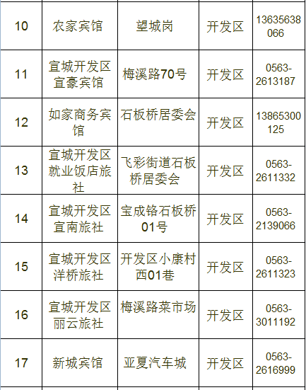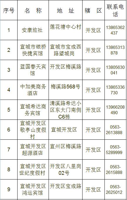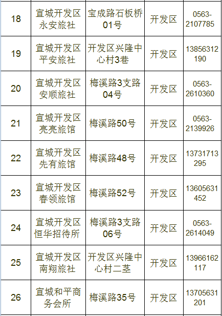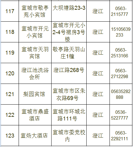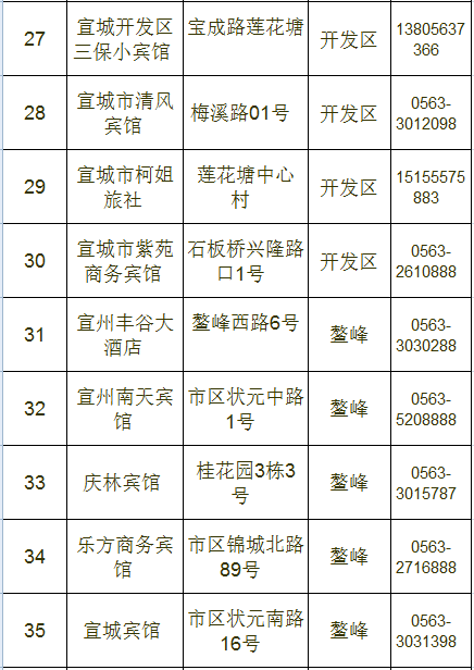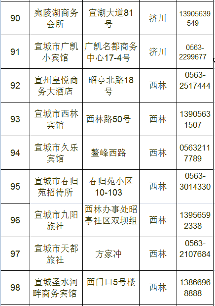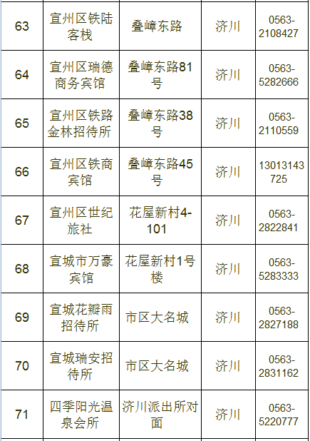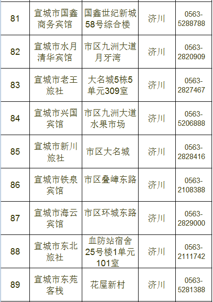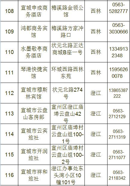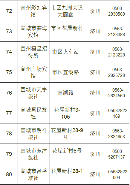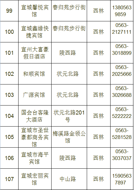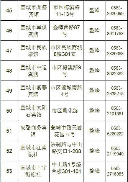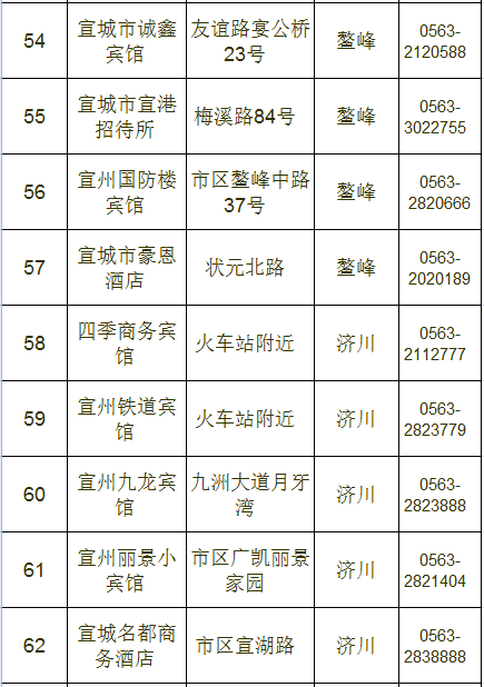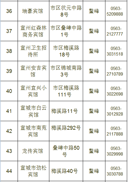 宣城市区宾馆、旅店情况一览表
