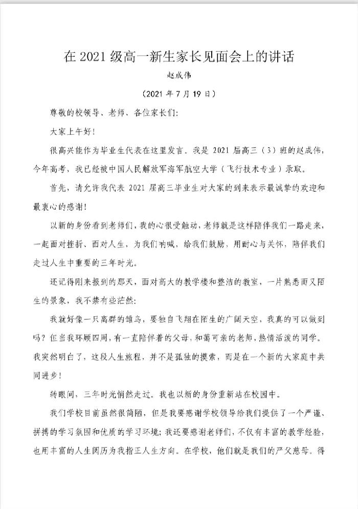 2021届高三优秀毕业生代表发言高三4班朱康安