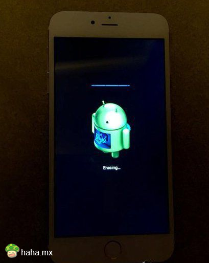 一位欧尼酱花了三万日元,从一个中国大叔那里买来的iphone6plus,重置后出现了安卓君在屏幕上转来转去……