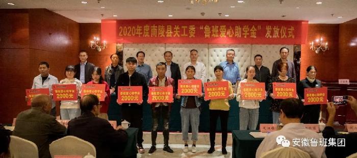 2004年,为了给打造南陵教育品牌出一份力,鲁班集团决定设立“爱心助学金”,承诺每年拿出10万元用于品学兼优、需要帮助的大、中、小学学生,至今已连续发放17年,共发放助学金170多万元,2403名学生得到资助。今年的资助金总额为103600元。