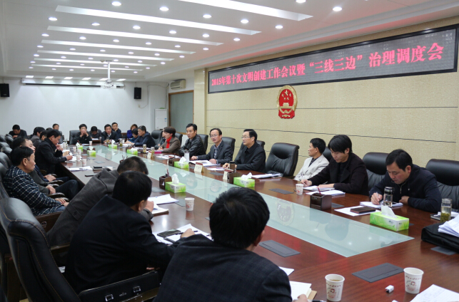 11月10日下午,南陵县召开2015年第十次文明创建暨“三线三边”治理工作调度会。县委常委、宣传部部长汪绍华,县人大常委会副主任叶远明,县政府副县长曹昌贵,县政协副主席胡旭东出席会议,各镇、创建主要职能部门及省级文明单位负责人参加会议。