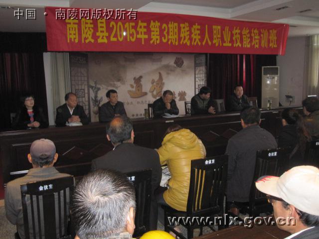 11月13日,南陵县2015年第三期残疾人职业技能培训班在许镇镇为民服务中心四楼会议室举办,来自该镇各村居的近50位残疾人参加了此次培训班。县残联副理事长李山联、业务科科长吴俊、镇分管副镇长张道平等出现了开班仪式。