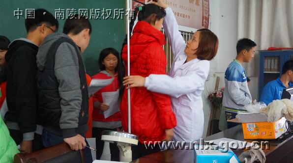 为了全面掌握学生体质健康情况,关爱学生健康,2015年11月16日上午,弋江镇东河卫生院的医务人员来弋江镇中联初中为全校学生体检。
