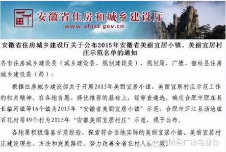 日前,省住建厅公示了我省2015年“美丽宜居小镇、美丽宜居村庄”的名单,芜湖县六郎镇入围“安徽省美丽宜居小镇”,繁昌县孙村镇中分村、芜湖县陶辛镇后沙村、南陵县烟墩镇霭里村、南陵县家发镇板石岭村、无为县红庙镇涧边村等芜湖5个村成为“安徽美丽宜居村庄”。