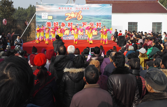 “歌唱起来、舞跳起来、快板打起来……”2015年12月31日上午由烟墩镇万兴村自编自导自建自演的首个美好乡村跨年联欢会开演了。