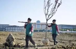 4月19日,常州外国语学校对面空地上,园林工人正在种树