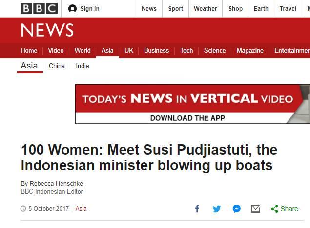 近日,英国广播公司BBC评出了一份所谓的“全球百名巾帼人物”的名单,来自印尼海洋与渔业部的部长苏西女士则榜上有名。