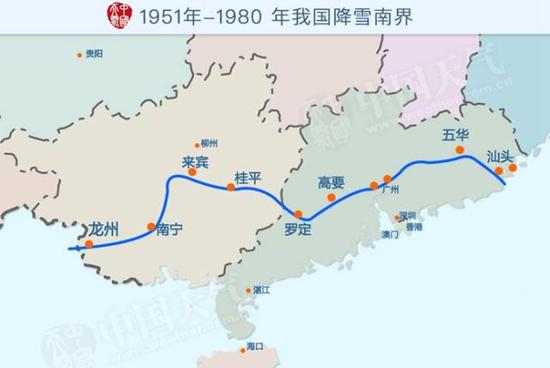 要说南方下雪也真是不容易,华南地区下雪更是要历经“千辛万苦”,广东、广西的好多朋友都没见过下雪天。不过,根据有完整气象记录以来(1951年以来)的这60余年资料显示,福建、广东和广西的许多地方曾经下过雪。