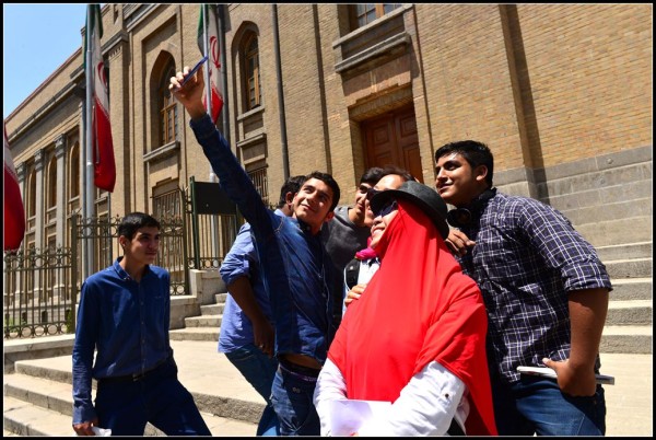 年轻的伊朗学生得知我们是中国人后,一直追着缠着我们,不停地要求与我们合影,留邮箱和联系方式。