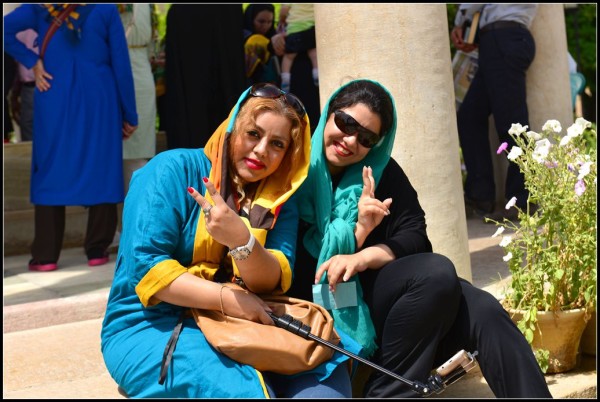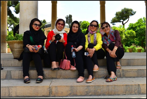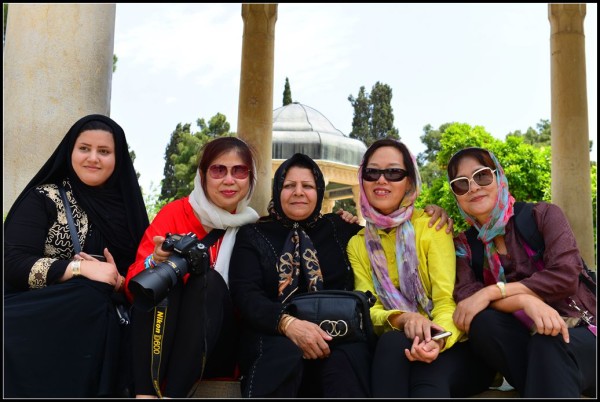 走累了,我们坐在台阶上休息时,伊朗的美女们就开始不停地要求与我们合影,刚与这几个照完,又来几个接着照,相机拍完还要手机拍,把我们几个中国人弄得像明星似的,这种感觉真还不错,看得出伊朗人非常喜欢我们中国人。