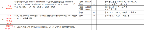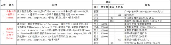 费用:机票5566+300人民币、签证550人民币,加上在伊朗当地的交通、食宿和门票,费用大约500美金/人。十一天旅游的费用:人均9000多元人民币。