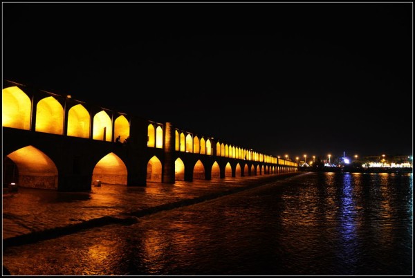 伊斯法罕三十三孔桥是因这座桥有33个桥拱而得名,是伊斯法罕最漂亮的一座桥。该桥长300米,宽14米,始建于1602年萨法维王朝时期。石桥本身是一座多功能的建筑,既是桥梁又能起到水坝的作用,这里也是伊斯法罕百姓休闲观光的好去处。
