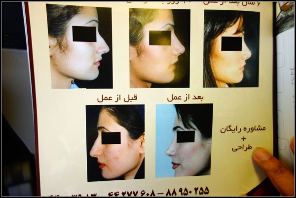伊朗爱美的帅哥美女,都不喜欢天生的大鼻子,而要花巨资(最便宜的近1000美金)做整鼻手术,这是伊朗飞机杂志上介绍伊朗的整鼻效果广告。