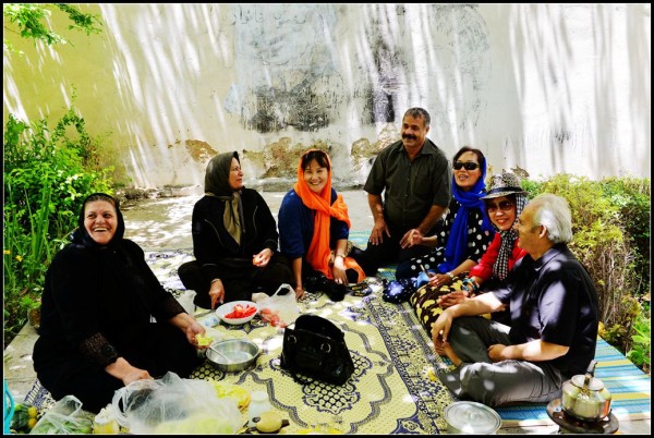 从四十柱宫出来,走几分钟,就是伊玛目广场,碰上这一大家子正在树荫下准备午餐,看到我们路过,便热情地邀请与他们一起进餐。