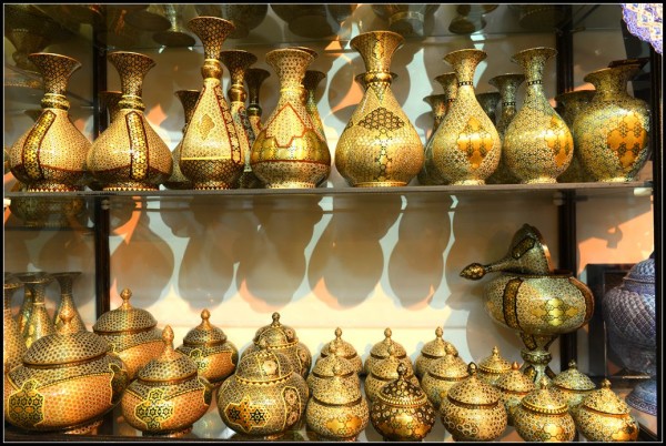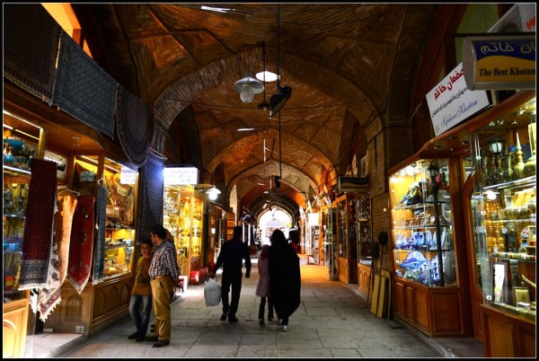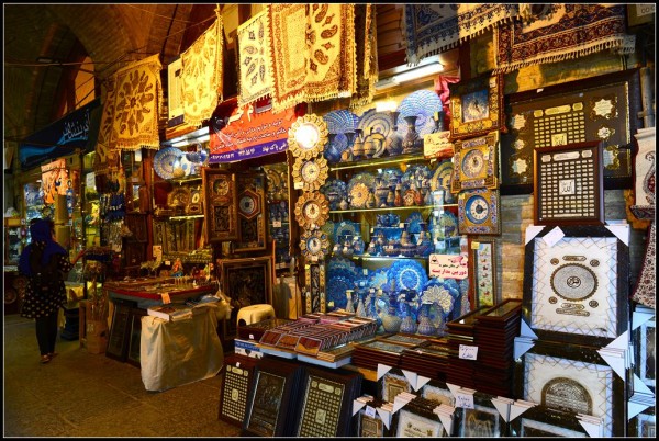 伊玛目广场四周拱廊的一层全部是商铺,主要都是买各种纪念品、手工艺品、地毯、金银器、书画和糖果食品等,主要是做游客生意的。