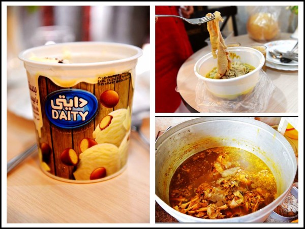 中午本想找个好点的茶馆吃饭休息,但一路上都没有找到,烈日下好多饭店都关门歇业了,走进了一家食品店,看到有雪糕卖,索性买上这一大桶,准备回酒店吃方便面去,但在路上意外的发现一家专门卖羊头和羊肚的店,店内一口沸腾的大锅里煮的都是羊头和羊肚,旁边还摞了一打面目狰狞的羊头,于是买一大盆羊肚打包带回酒店。