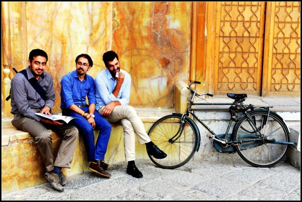 在沙阿清真寺我们遇到这些来自叙利亚的人。