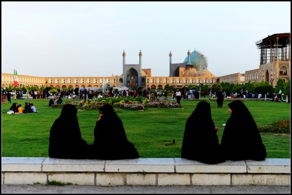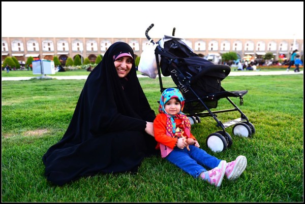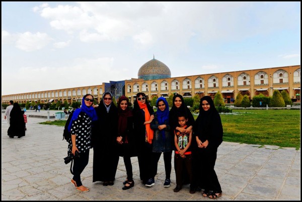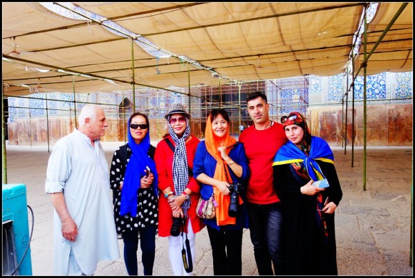 这些被黑色长袍遮得严严实实的妇女属于伊朗比较保守的群体,但是与我们这些中国人聊天时她们也很放得开,当我们运用肢体语言询问她们整天穿着长袍,身体内是否佩戴金饰时,她们个个争先恐后的掀开长袍,揪出又粗又大的金项链和金手镯向我们展示。当我们要给她们拍正面的相片时,她们夸张地用手在脖子上比划,表示不可以,拍了相片要被杀头的,然后她们自己也哈哈大笑,我们只好给她们拍个背部。