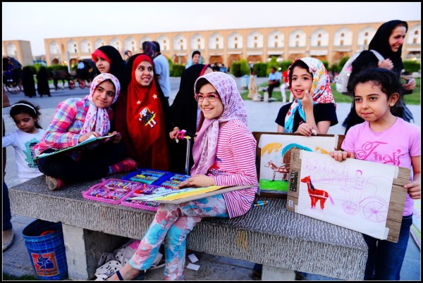 伊朗女孩子达到10岁,就要戴头巾,这是在广场写生的女孩。
