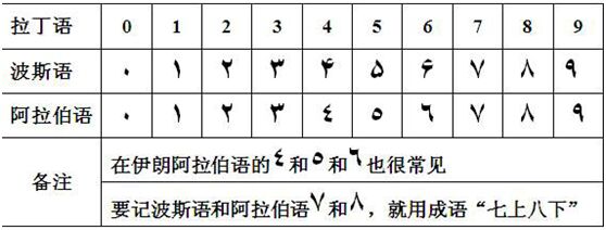 伊朗采用波斯数字,我们将此表打印出来,进行对照。