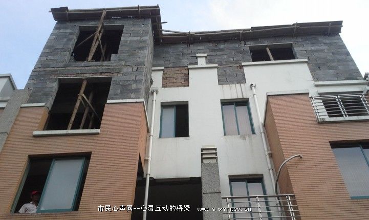 本人居住南陵县蔚蓝世纪花园8-08,因9号楼7、8号违章搭建,对8号楼相应几家采光造成极大影响,多次向相关部门反映,也多次找物业,但物业说他也多次下达停工通知,我们要求物业拆除,物业推脱说他们没有执法权。无果,现反越住越大.市民心声网 http://www.smxs.gov.cn